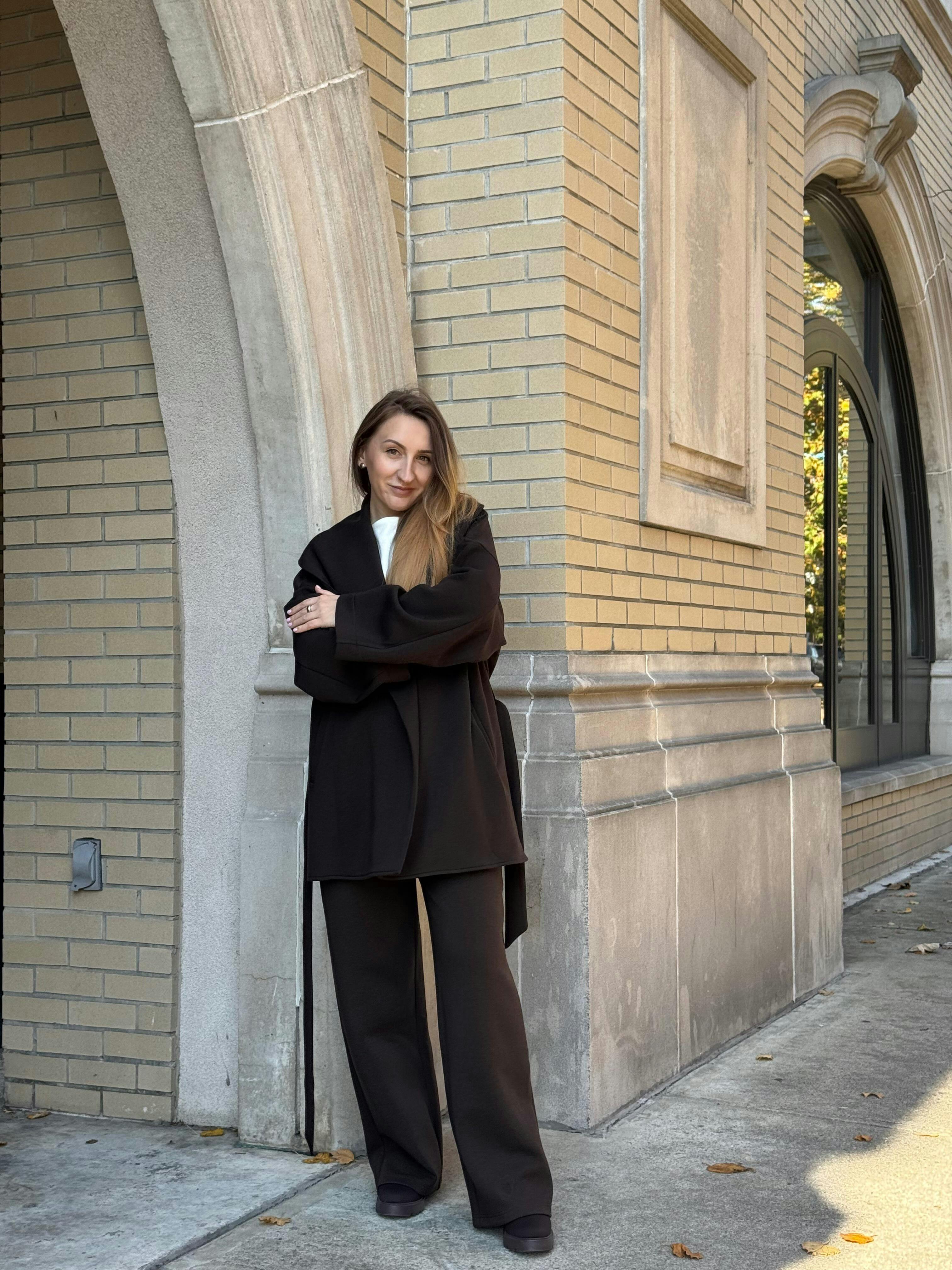 This robe-jacket feels super cozy thanks to its soft, fuzzy knit (called FuzzLuxe) and is warm without being too bulky. The shawl collar gives it a relaxed, draped look, while the fabric belt lets you cinch your waist or leave it open. The pockets are really handy for keeping your phone or little things close. It’s stylish enough to wear around at home or layer out — overall, I love how comfy and versatile it is.
