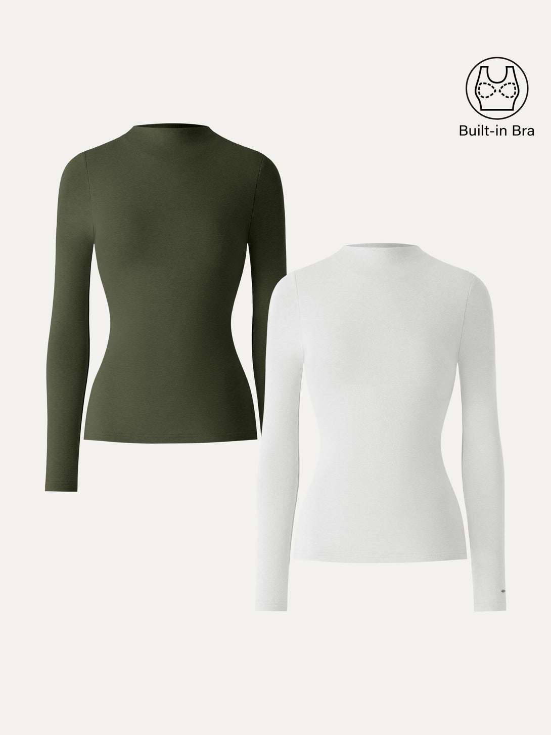 That’s how good this top is. I wear this under cardigans, blazers, and even dresses. The neckline looks intentional and chic. The fabric is smooth and doesn’t bunch up. The fabric moves with me and the brami doesn’t dig in. I’ve worn it all day without any discomfort.