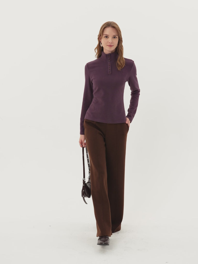 You’ll love this regular-fit cozy top featuring a quarter button-up turtleneck that lets you style the neckline your way. Designed to hit at the high hip, it’s soft, versatile, and effortlessly chic for everyday wear.