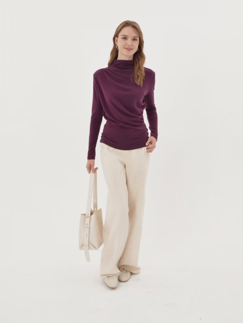 You’ll love this mockneck top featuring elegant ruching at the waist and shoulders for defined silhouette. Designed with a close-fit hem to accentuate your shape, it’s a refined, easy-to-style piece that feels both cozy and chic.