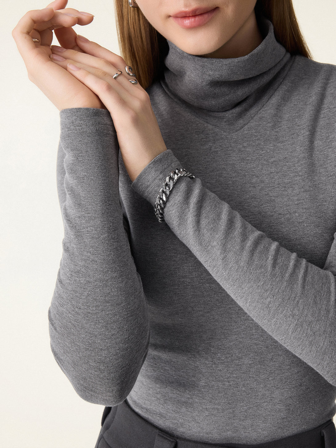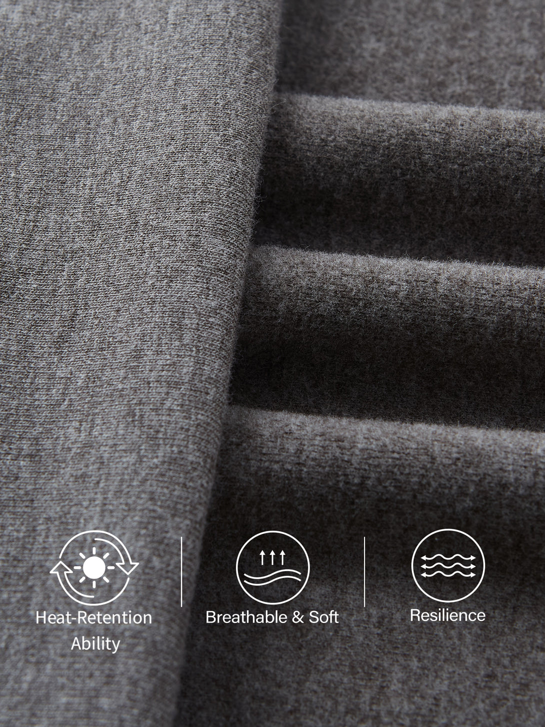Eco-Mousse® is a premium blend that combines softness with durability. This Thermal Brushed Rib 2.0 version is brushed on one side for extra coziness and mid-level insulation. With excellent four-way stretch and natural breathability, it moves with you and keeps you feeling fresh. Ideal for layering in early winter, especially in temperatures between 41–59°F.