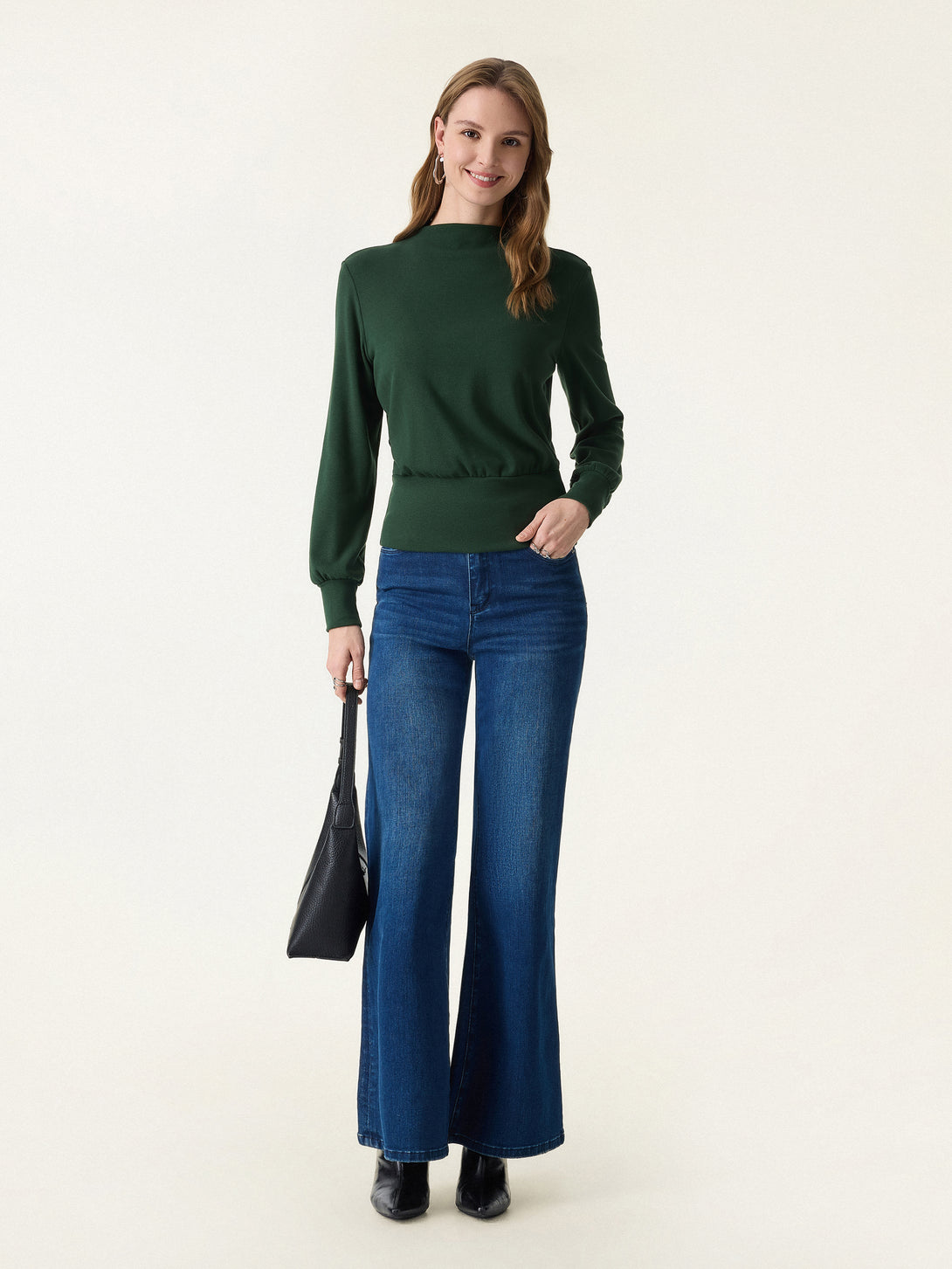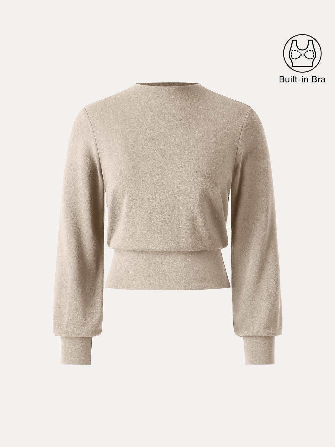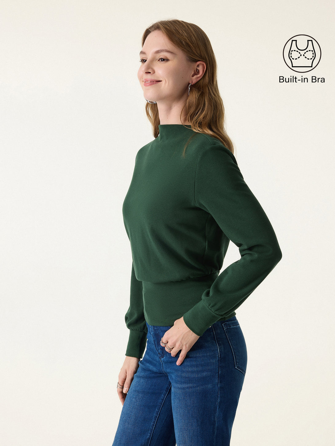 You’ll love this regular-fit top featuring a mockneck and elegant bishop sleeves that add soft volume and charm. Designed with removable bra pads for comfort and support, it’s a chic essential.