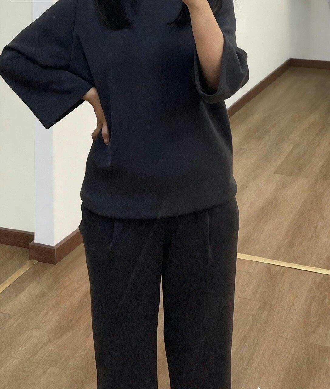 This matching set is great! The material is so soft, and it feels like it's hugging me. I can wear it to work or just hang out. So versatile.