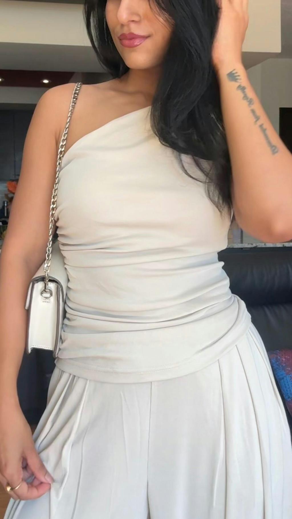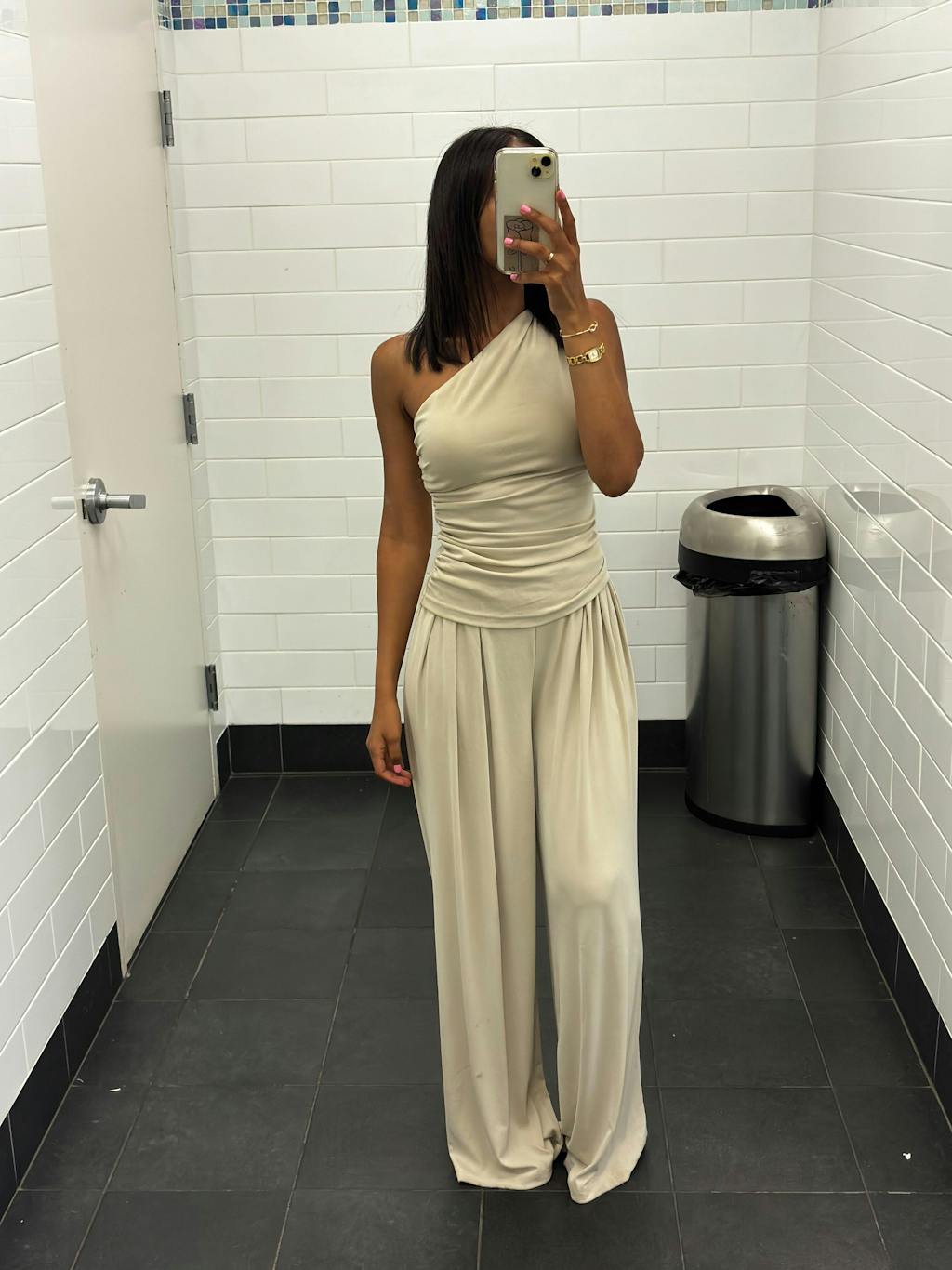 Absolutely love this set! The fabric is incredibly soft and lightweight, and the sandwashed texture makes it look very elegant. The ruched brami is flattering and fits beautifully, while the palazzo pants are flowy. The quality feels great and it’s perfect for both casual and dressed-up looks. Very happy with it 💛