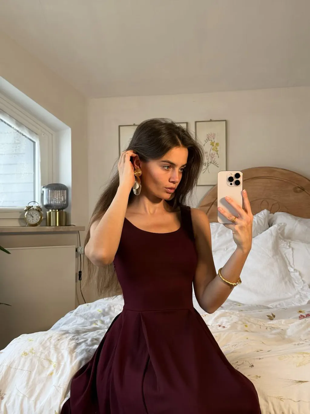 You’ll love this midi dress with a scoop neck and pleated detail for elegant simplicity. Falling to a lower-calf length with inseam pockets and removable bra pads, it’s a must-have for the holidays and beyond.