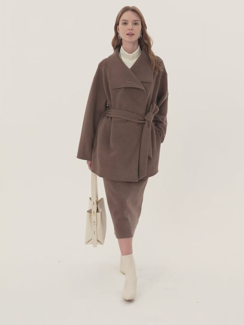 You’ll love this roomy thigh-length coat featuring a convertible collar and a clean buttoned front for a refined yet relaxed silhouette. Finished with practical inseam pockets and a self-fabric belt to define the waist, it’s the perfect mix of modern elegance and cozy warmth.