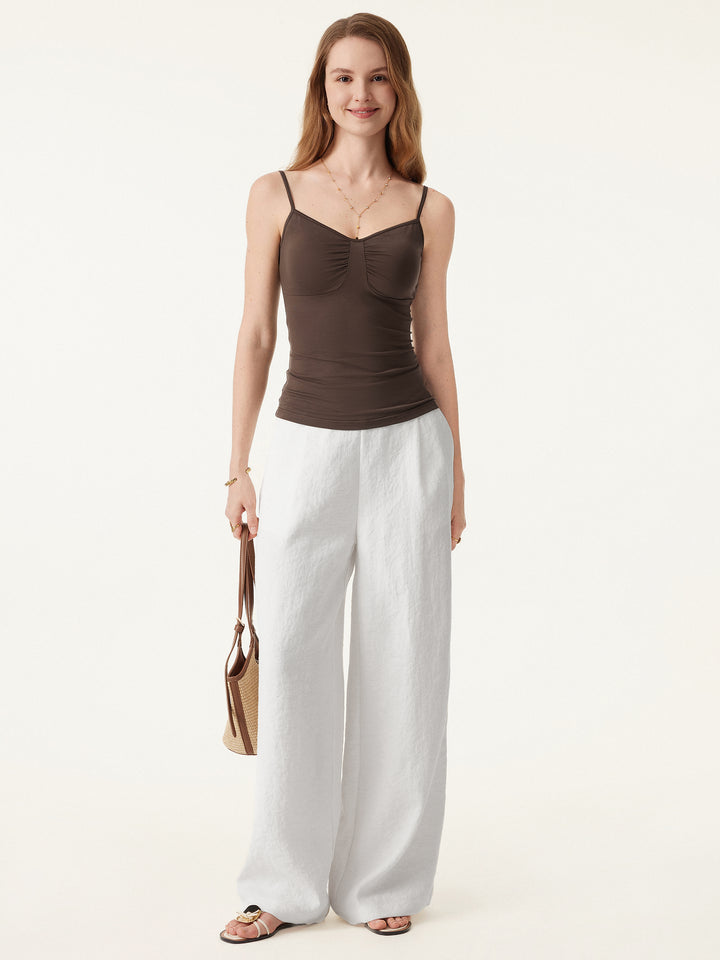 Breezy Linen Mid Rise Wide Leg Pant with Pockets