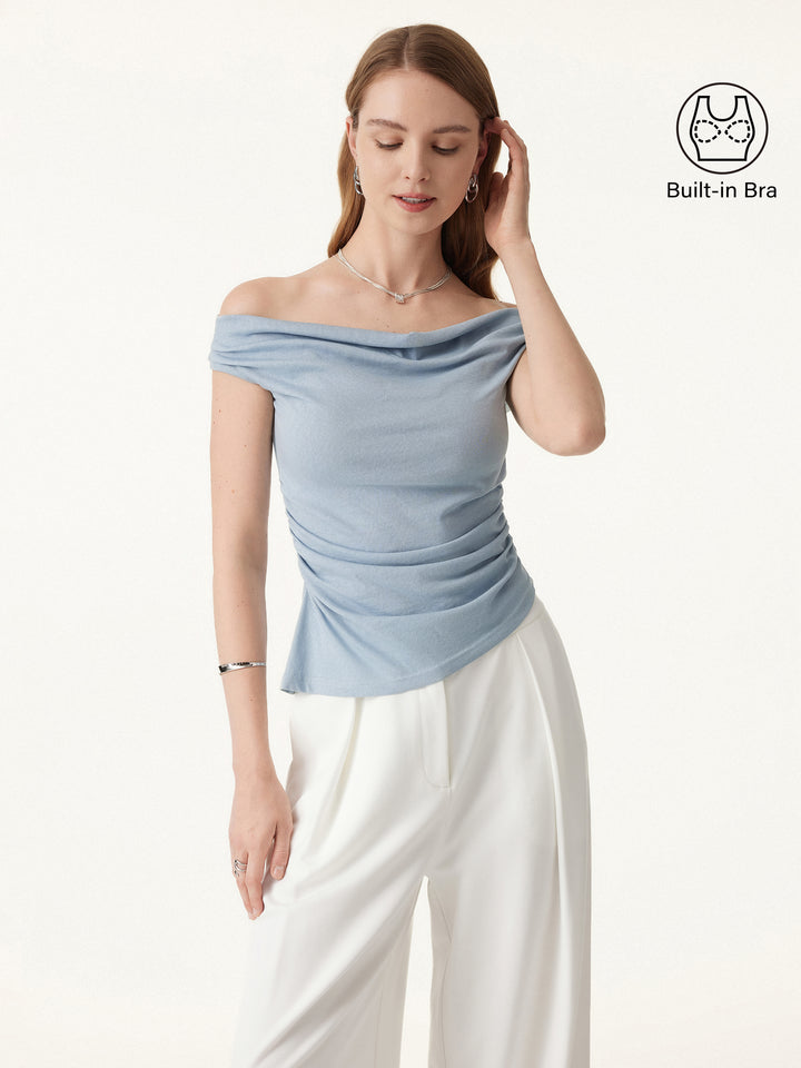 Obsessed with this cold-shoulder brami! Arctic fog color is even prettier in person—like a soft gray-blue that goes with everything. Got so many compliments the first time I wore it! The gathered sides and asymmetrical hem add so much drama—perfect for date nights or drinks with friends. 💃