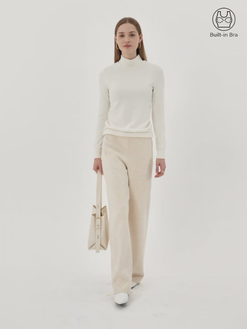 You’ll love this top featuring stand collar and a banded hem and cuffs for a refined, structured look. Finished with removable bra pads for comfort and support, it’s a versatile piece that balances polish and ease.