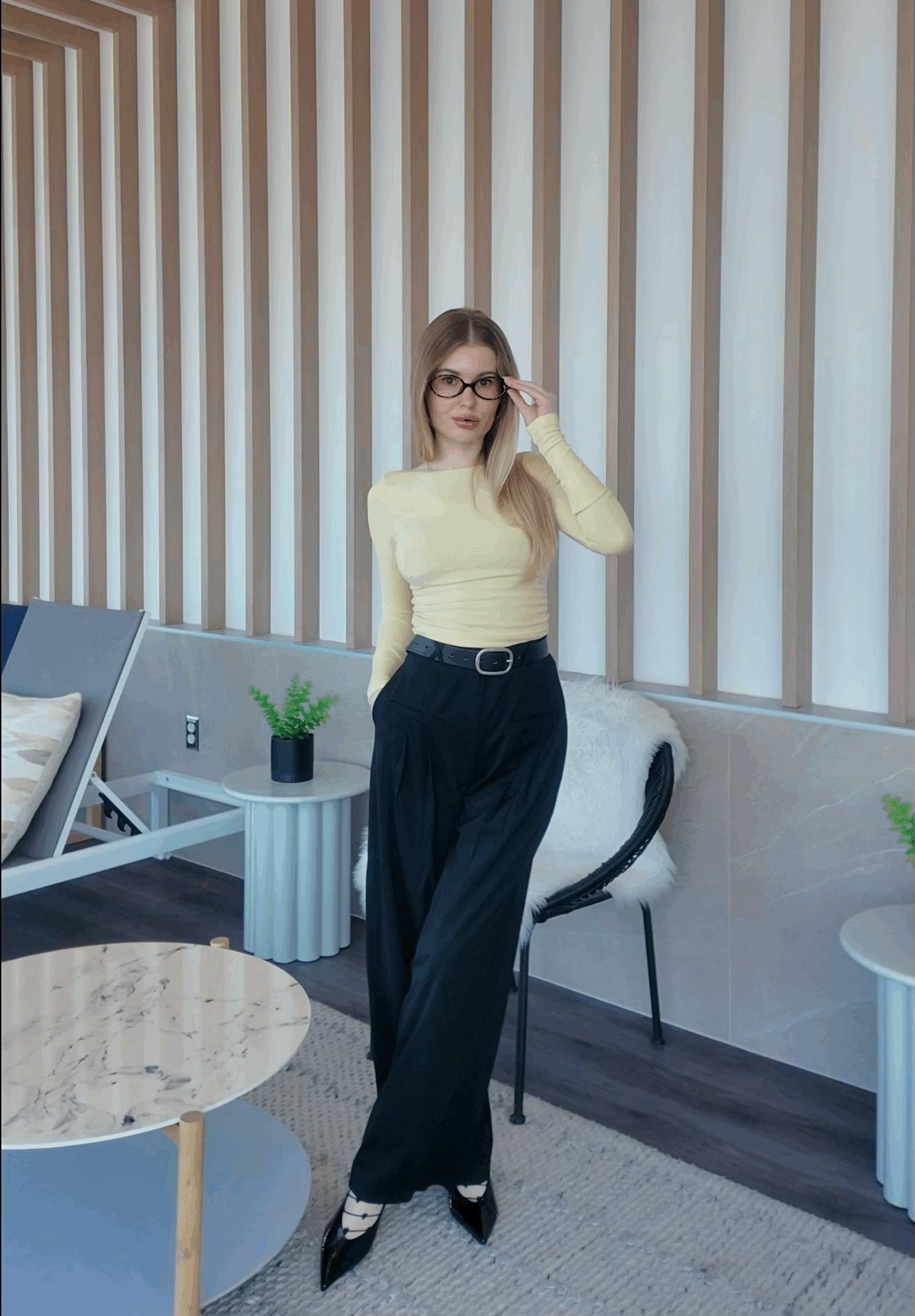 These pants are amazing — I love the cut and fit! Super comfortable and stylish, perfect for office looks.