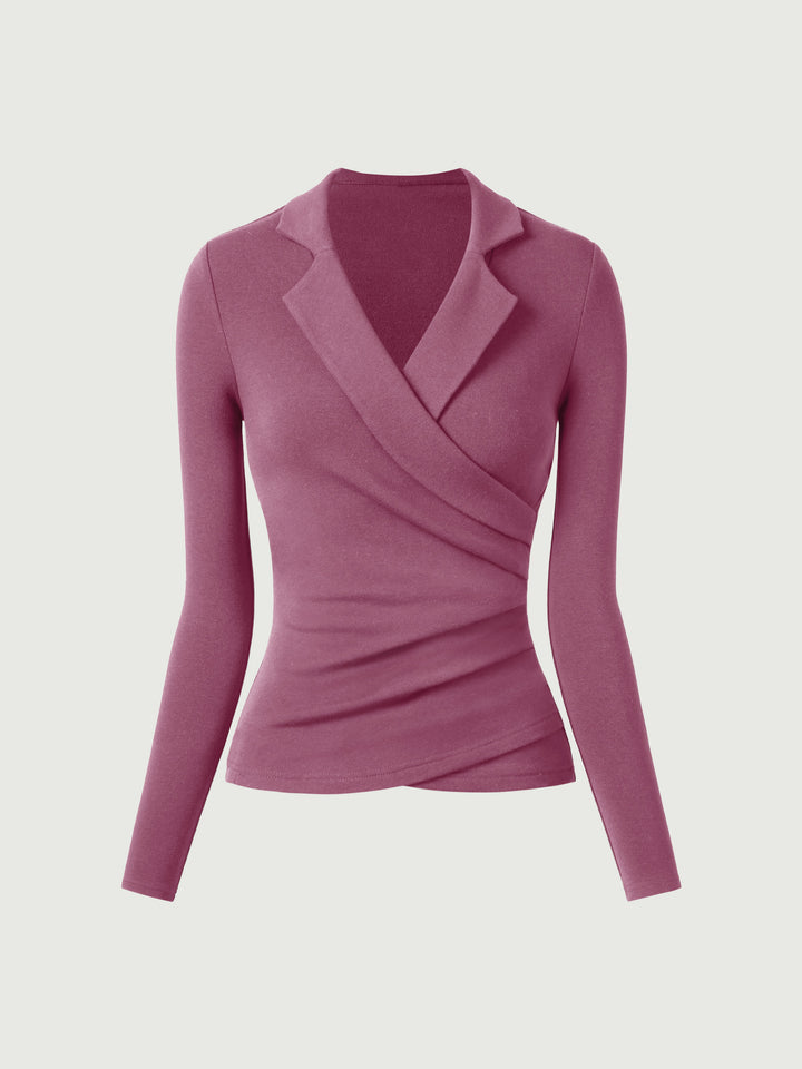 Elevate your everyday style with our Eco-Mousse® Collared Surplice Top, featuring a flattering V-shape that beautifully elongates your neck. The cut is designed to emphasize your curves and accentuate your natural silhouette. Inside, the thermal brushed material offers exceptional warmth and insulation, making it ideal for cooler days. The soft and stretchy rib ensures a comfortable, snug fit that moves with you.