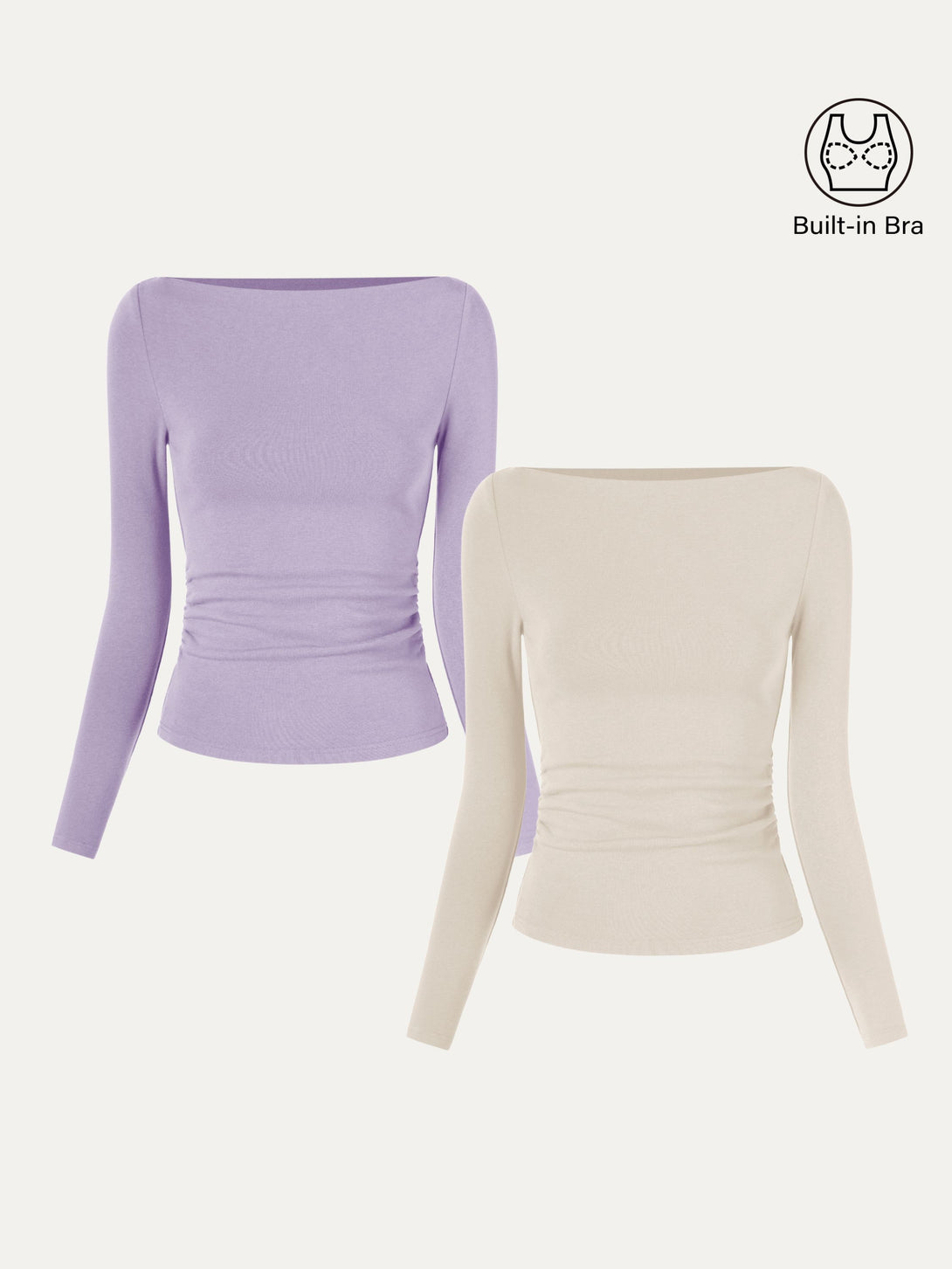 Our Eco-Mousse® Modern Side Ruched Boatneck Brami Top is perfect for every day, with a flattering boat neck silhouette that beautifully frames your face and shoulders. The delicate folds are thoughtfully placed to accentuate your waistline, offering subtle shaping that enhances your natural curves. It also features built-in pads for light support and coverage, even without a bra.