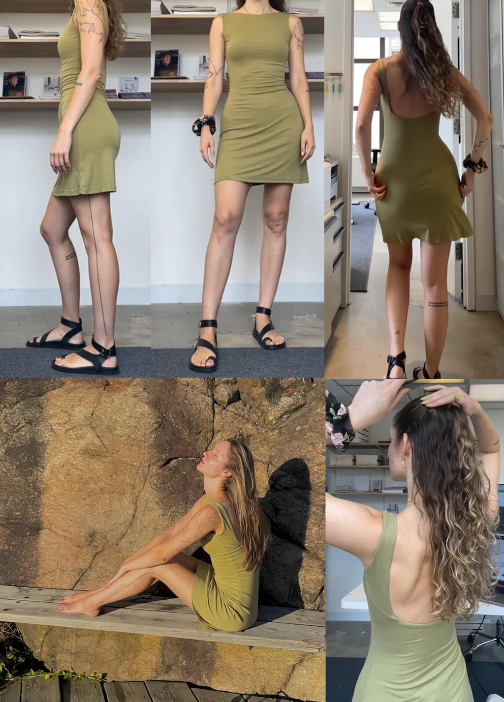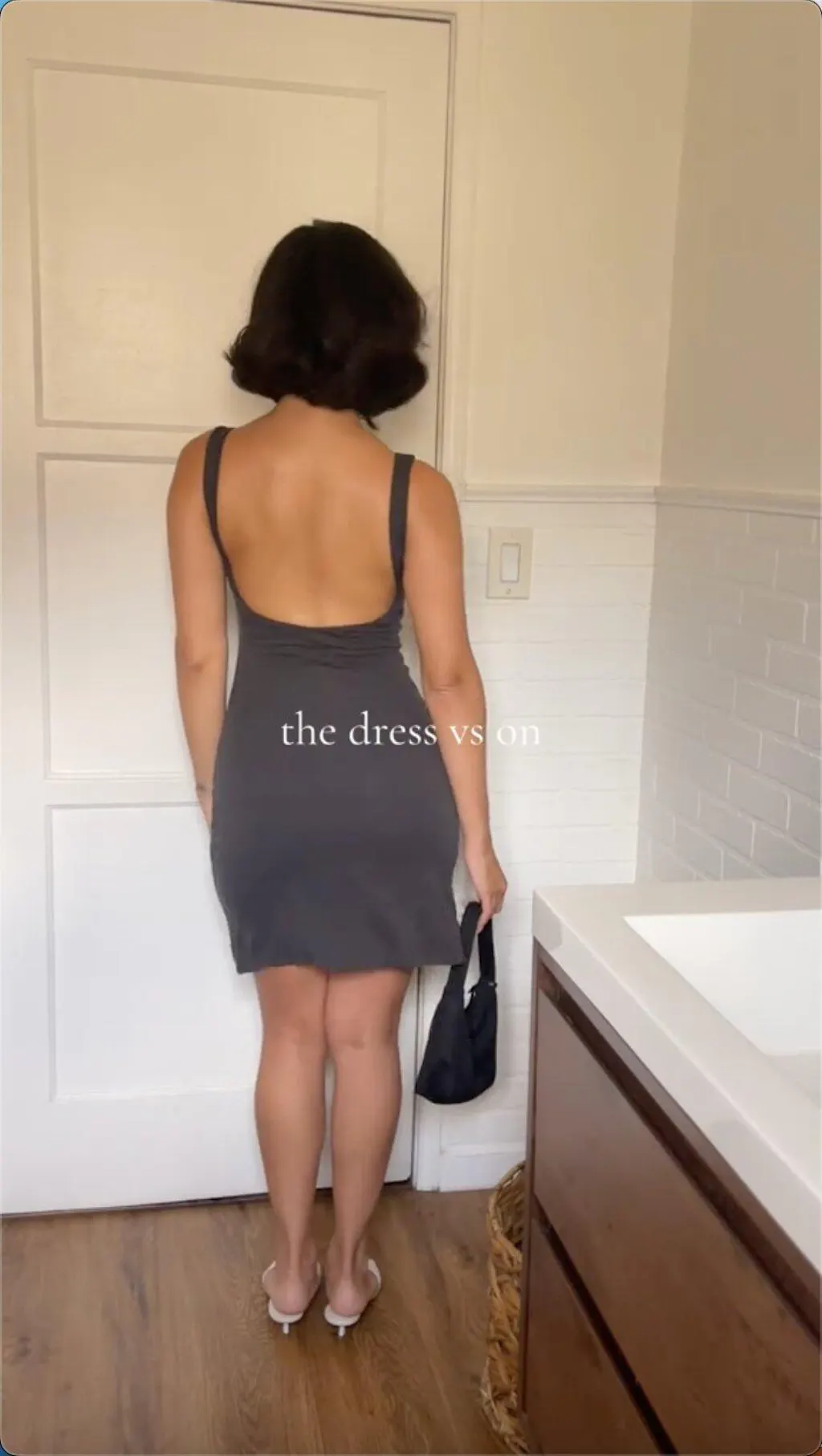 "Wait you're not wearing a bra? How do your boobs look so perfect??" - my boyfriend about this dress. It fits snugly and wraps around the body in a very flattering way, the open back is absolutely the best part. It is quite thin (even with the underlining) so it will show panty-lines (and your food coma), gets a little wrinkly at the bottom when sitting. The back seams are already unstitching on my dress after 3-4 wears, which is why I do not give it 5 stars. I am also worried it will shrink in the wash. Apart from that, it's super flattering, I've received plenty of compliments on it, the color is great. Will it live long in my closet? A little doubtful.