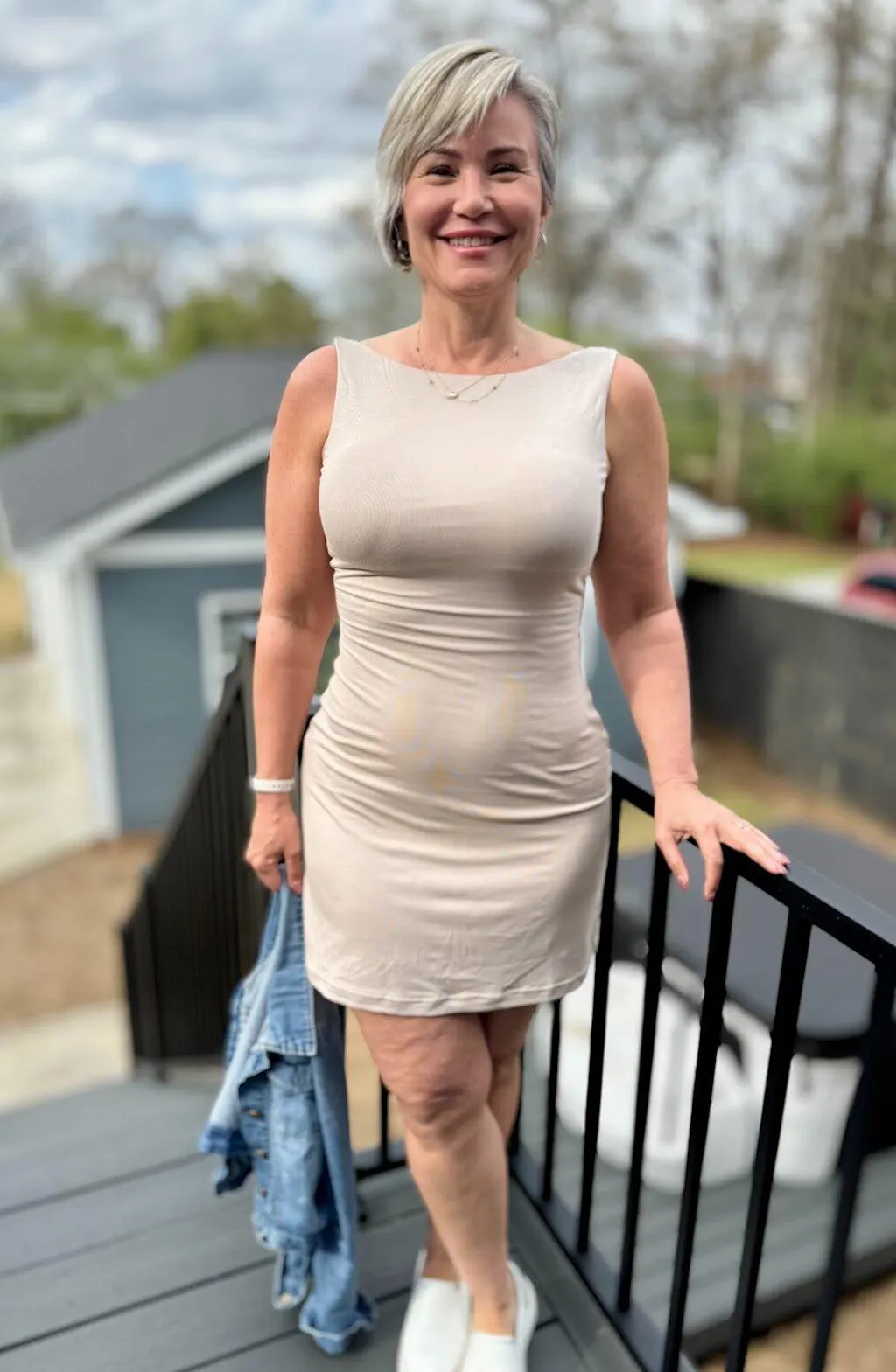 This is my go-to dress now! The removable bra pads are genius – no more awkward bra straps.