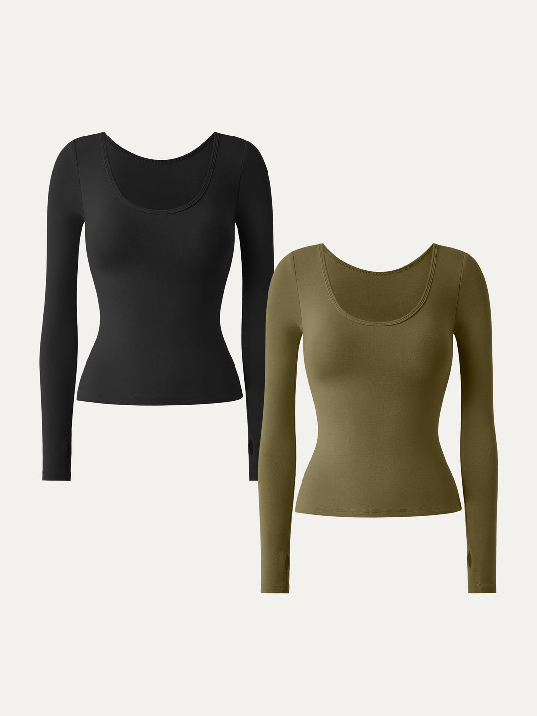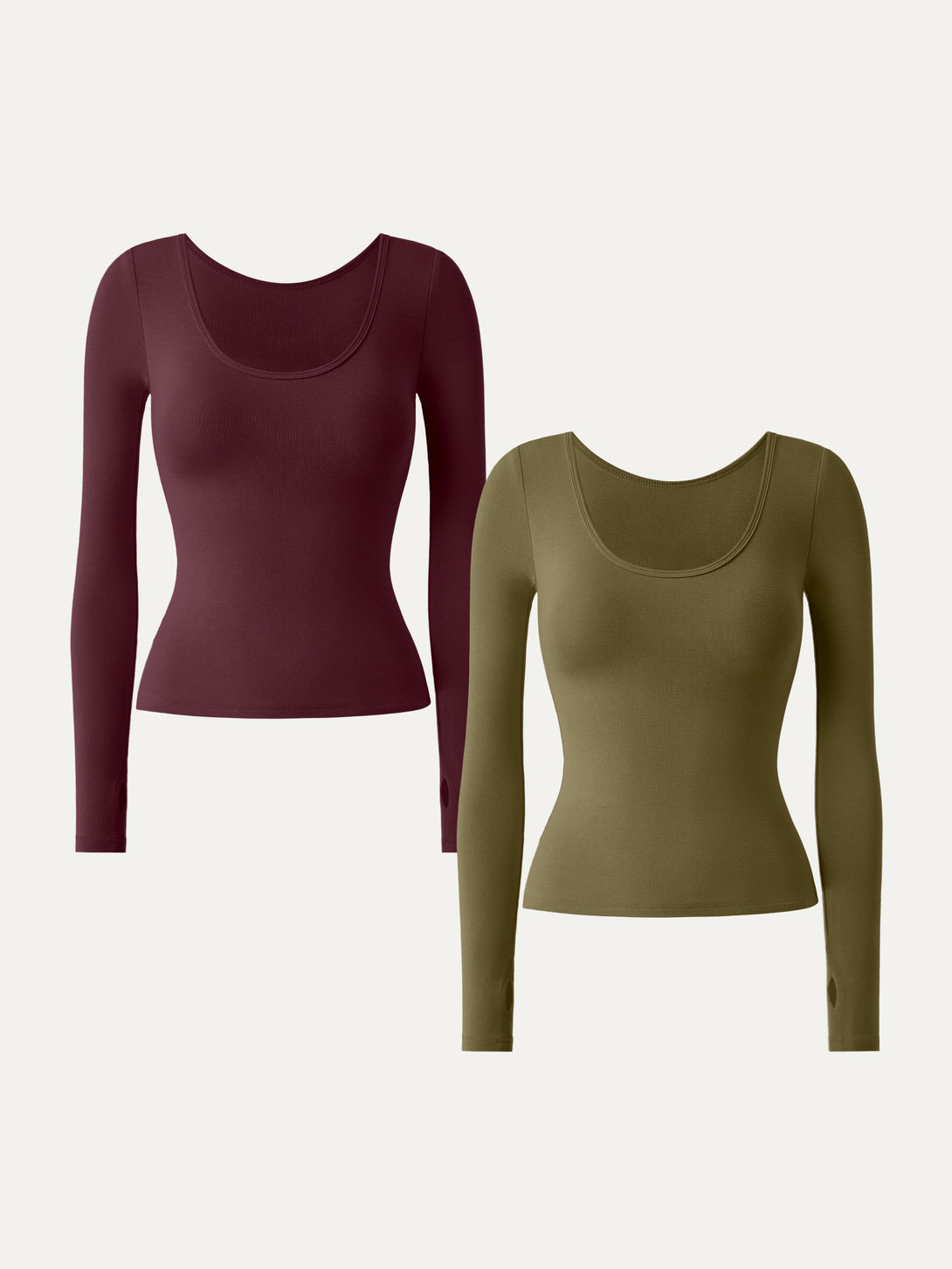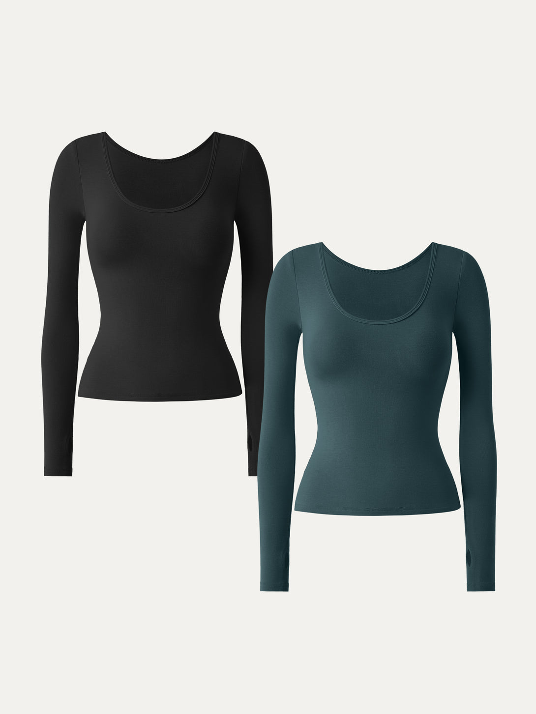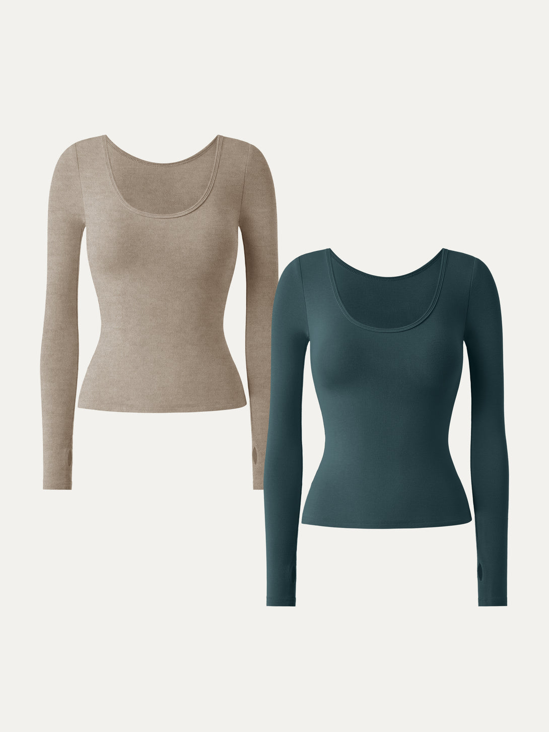You will love this ultrasoft base layer that transitions effortlessly from scoop neck to boatneck styling. The slim fit sits right at the high hip for easy layering, while thumbholes add a cozy, functional touch. A must-have in your wardrobe.