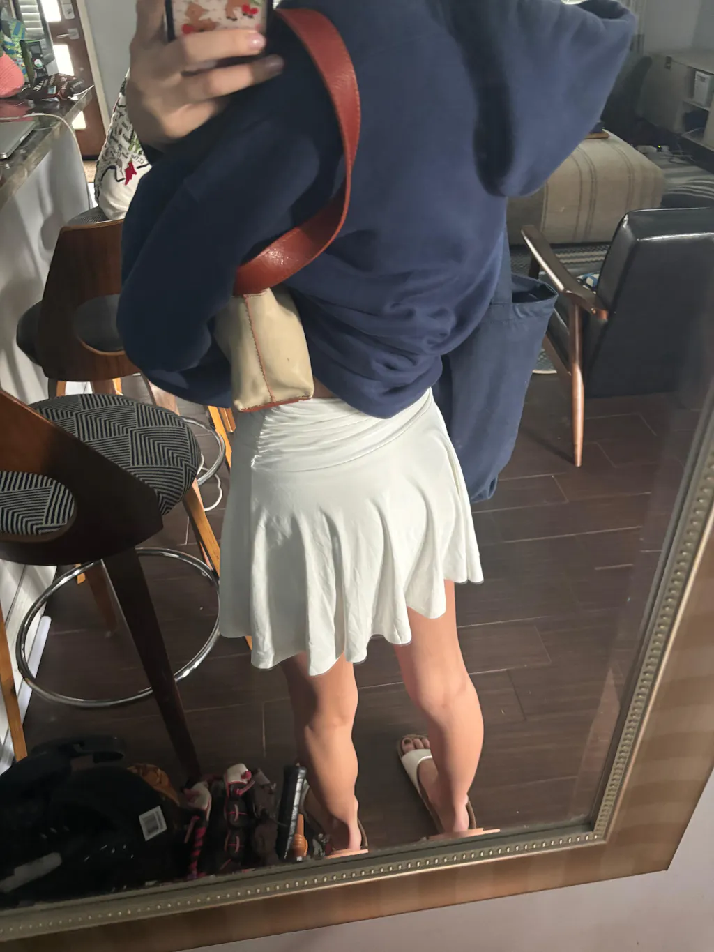 I love this mini skirt so much. I love skorts, and it’s definitely short enough while not being long, it hits mid thigh on me. Highly recommend!