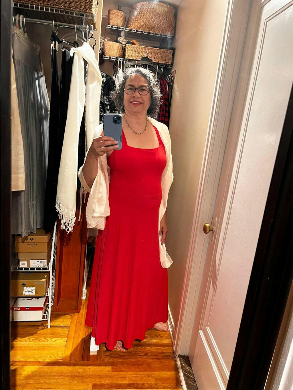 I got this dress (flowy wide strap) for two reasons, 1) It was available in red, and 2) because the straps cross over in the back, which solved the minor problem with the first dress I bought,( the Square Neck Flowy New Airy Brami Midi Dress in black) which was that the straps being a bit far outwards on the shoulders and falling off my shoulders a bit.