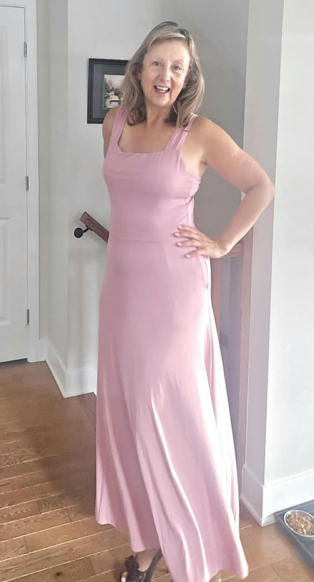 Both dresses are fabulous for their ease of wear. The material is heavy but not too heavy for hot days. The fit is flattering despite the fact that I have a tummy. (the black dress hides it well). My only complaints are the straps falling off a bit, and the fact that both dresses are called midi, but the wide strapped one, that has the straps cross over in the back, is MUCH longer than a midi, more like an evening dress, so much so that I almost returned it, fearing I would not wear it casually during the day. I fought the self imposed limitations however, and decided to keep the long red dress and force myself to wear it to do casual things. I purposefully wore it to go vegetable shopping! I am happy I kept it. My husband and family have complemented me on both the black true midi and the red, long midi dresses. The best part about the company is the personal customer service I got from a lady called Bonnie. She answered all my questions personally, and offered me help, as well as a discount on the second dress. I recommend purchasing from this company without hesitation. Quality and service are excellent. Dominique. Photos show the length discrepancy.