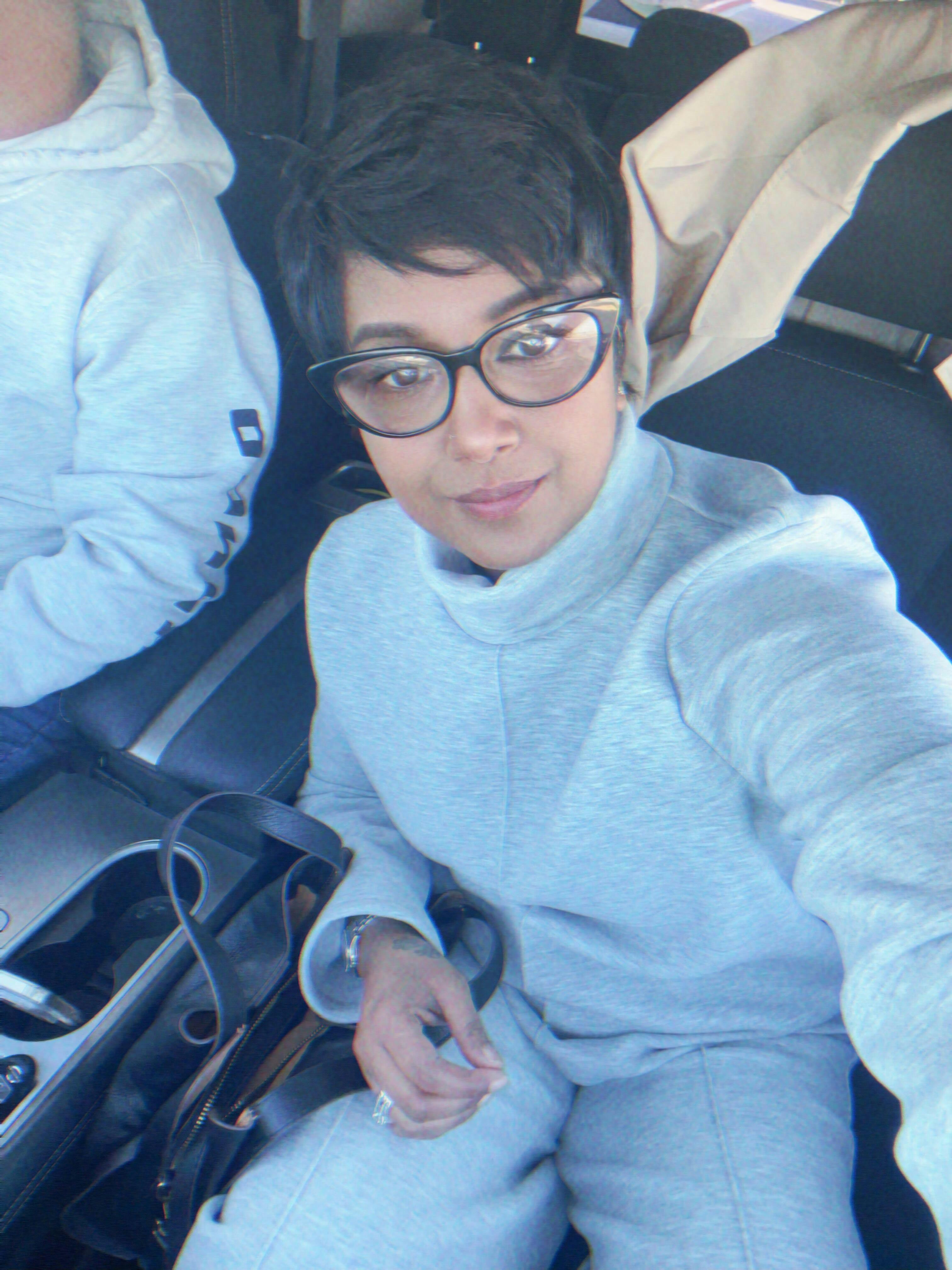 I got the pant set without the sleeves in the light grey color so I ordered this sweater when it came out in the same color. I love the fabric but I always have a seamstress take off the turtleneck because it’s too bulky and not comfortable.