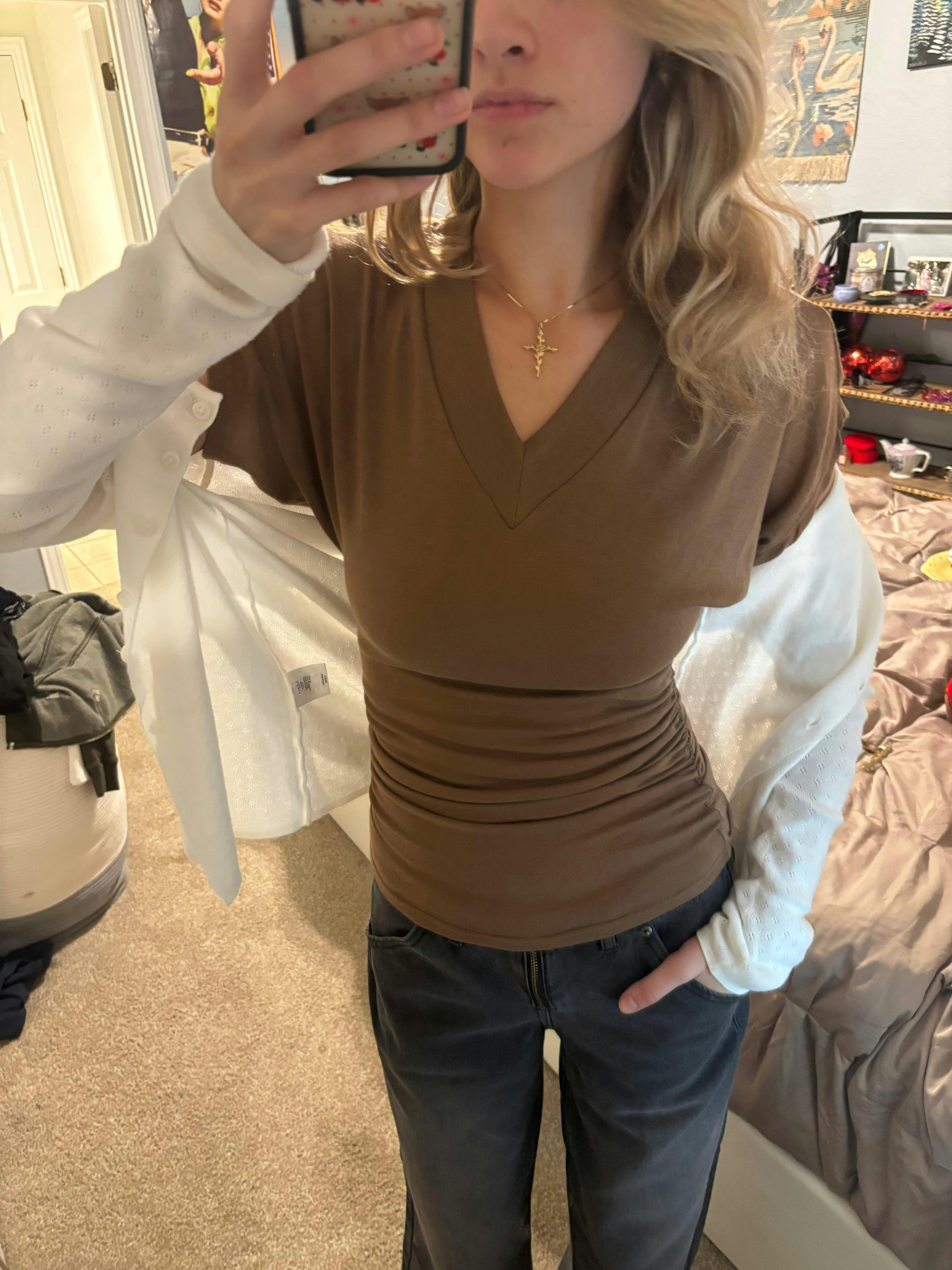 The Lyocell cashmere fabric from OGL is perfect! The ash brown color is perfect. This is seriously my favorite top I’ve gotten from here. I hope this make more in this fabric and color!!