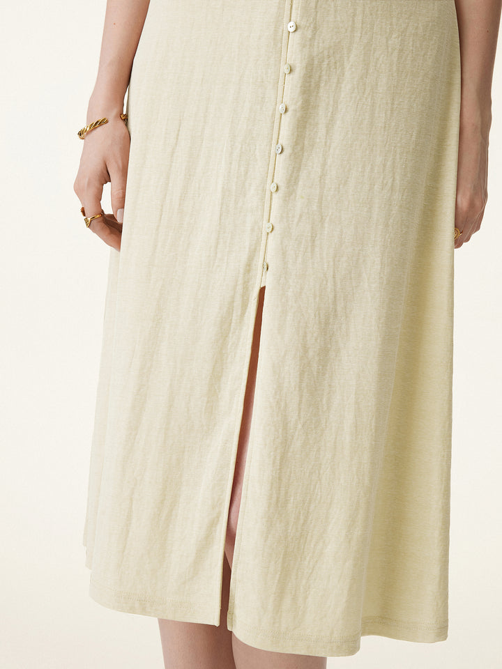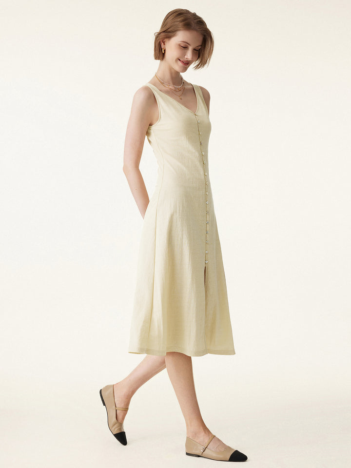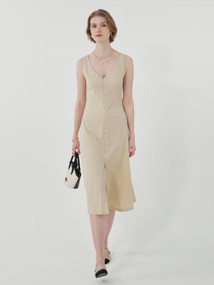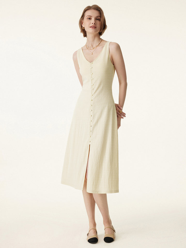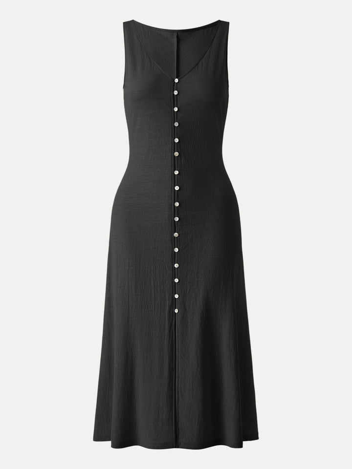 This versatile piece works as both a midi dress and a long vest. Designed with a flattering V-neckline, button front for styling flexibility, and an A-line silhouette that moves with ease. Regular fit keeps it effortless, no matter how you wear it.