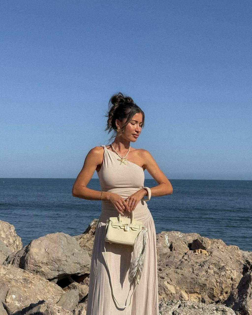 I’m obsessed with this style! That twisted detail on the one shoulder? It takes a basic one-shoulder top and cranks up the vibe—total standout. I brought it on my short trip, and let me tell you, the photos are fire! Absolute perfect top. 📸