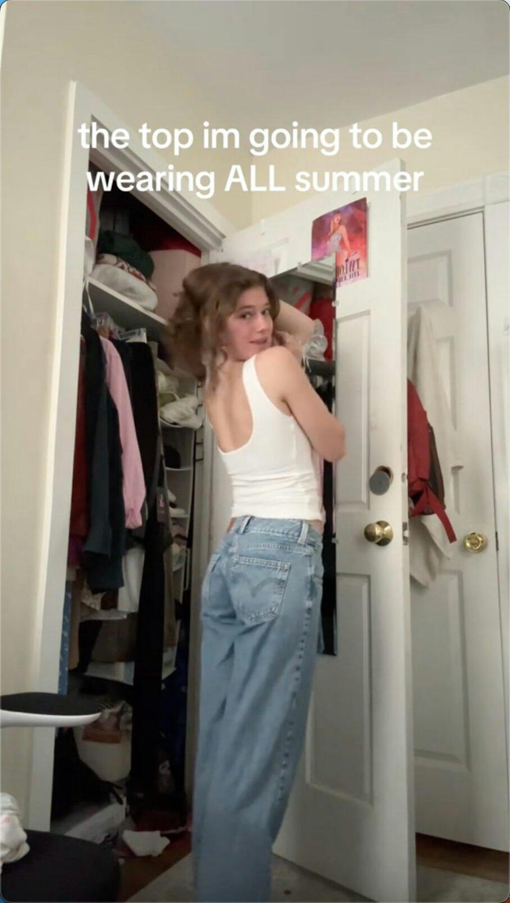 It has really good elasticity. I don't feel tight no matter how much I move. The fabric is very breathable. I don't feel uncomfortable even when I sweat in summer. The built-in pads are fixed well and won't shift. Also, this white color is super versatile. It looks good with anything. Just go for it!