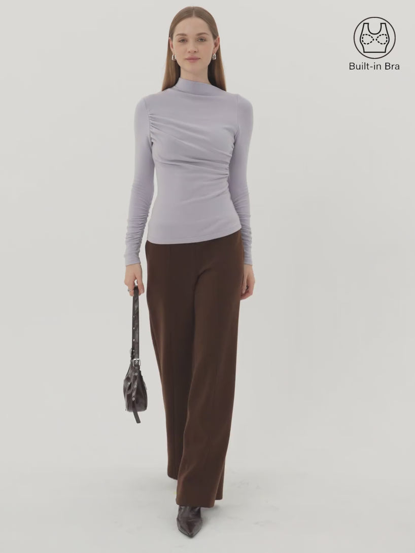 You’ll love this slim-fit top featuring an angled mockneck and soft diagonal ruching that beautifully enhances your silhouette. Designed with ruched sleeves, it’s a sleek, modern piece that feels as elegant as it looks.