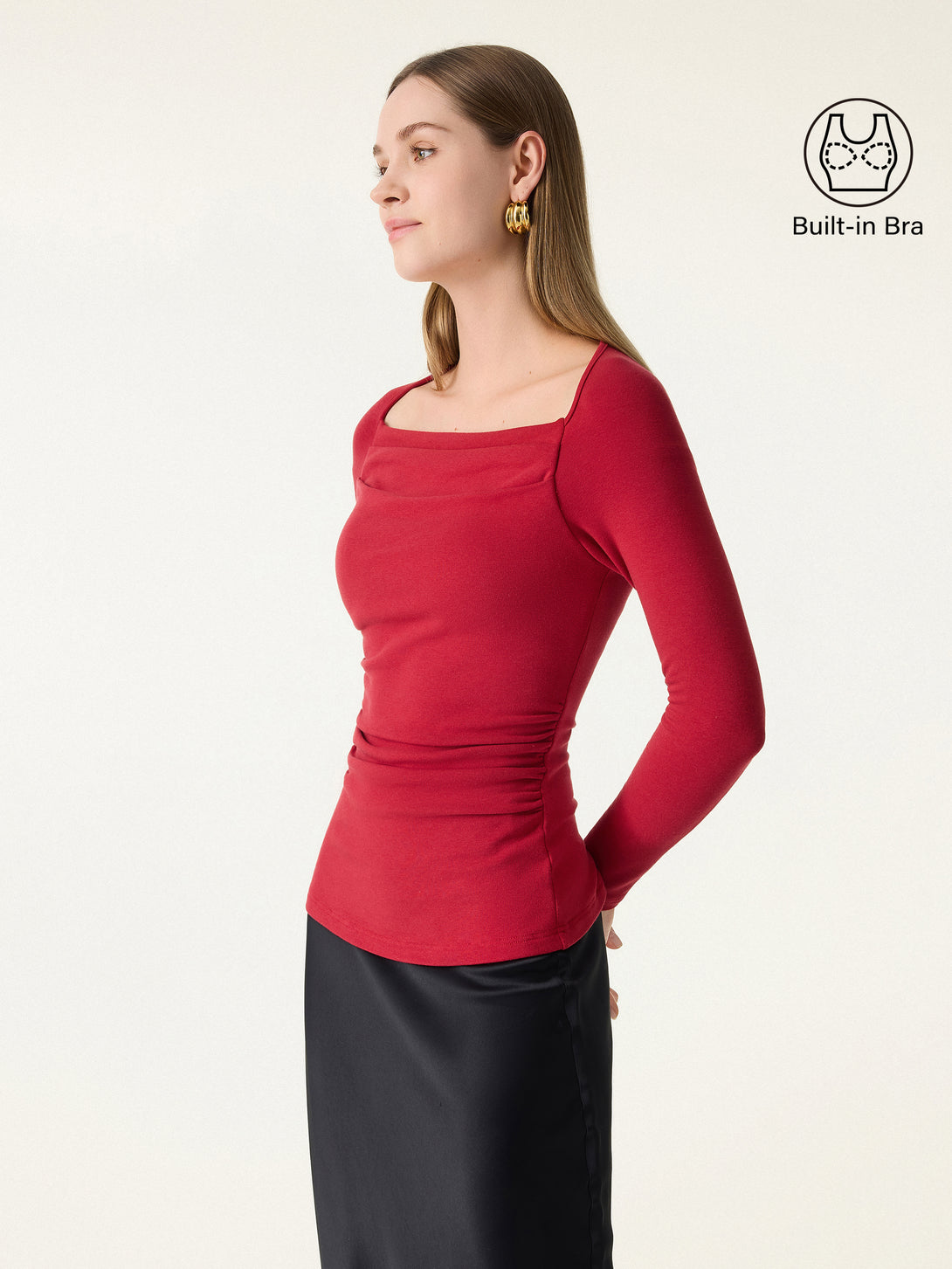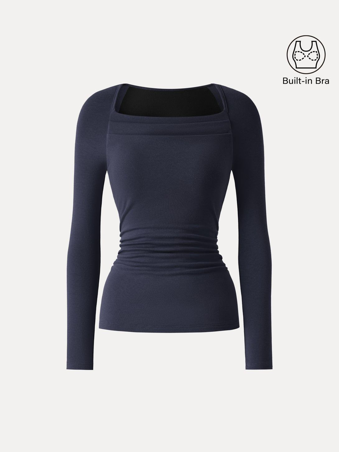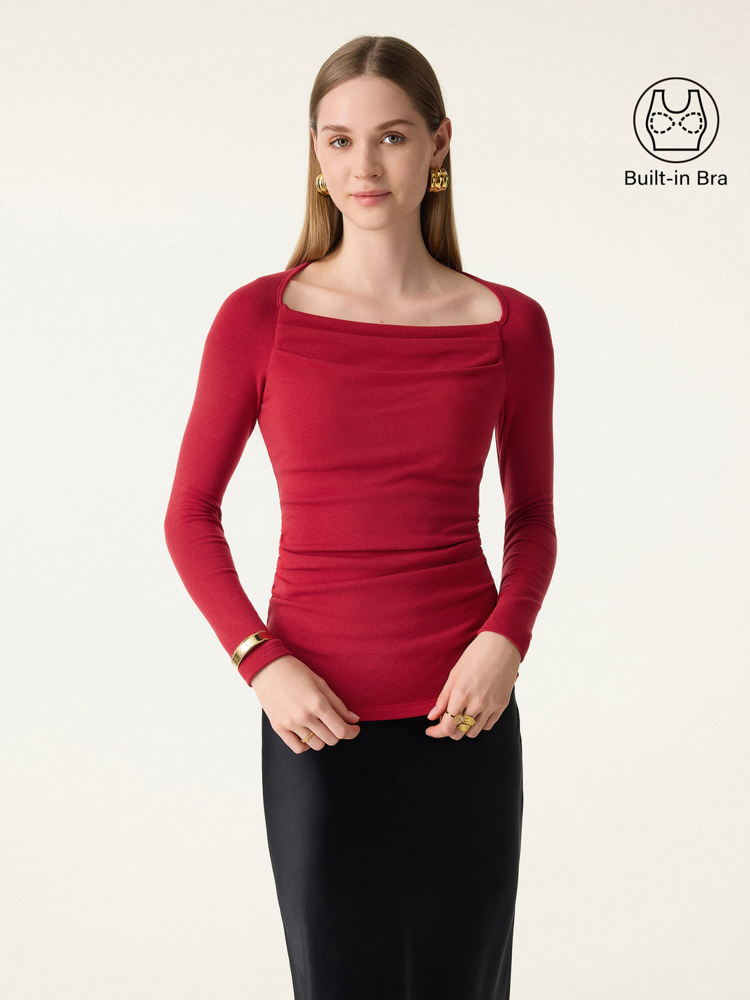 You’ll love this top featuring a straight neckline that beautifully frames your collarbone. Designed with tucked details for flaterring shape, it’s also finished with removable bra pads for comfort and support.