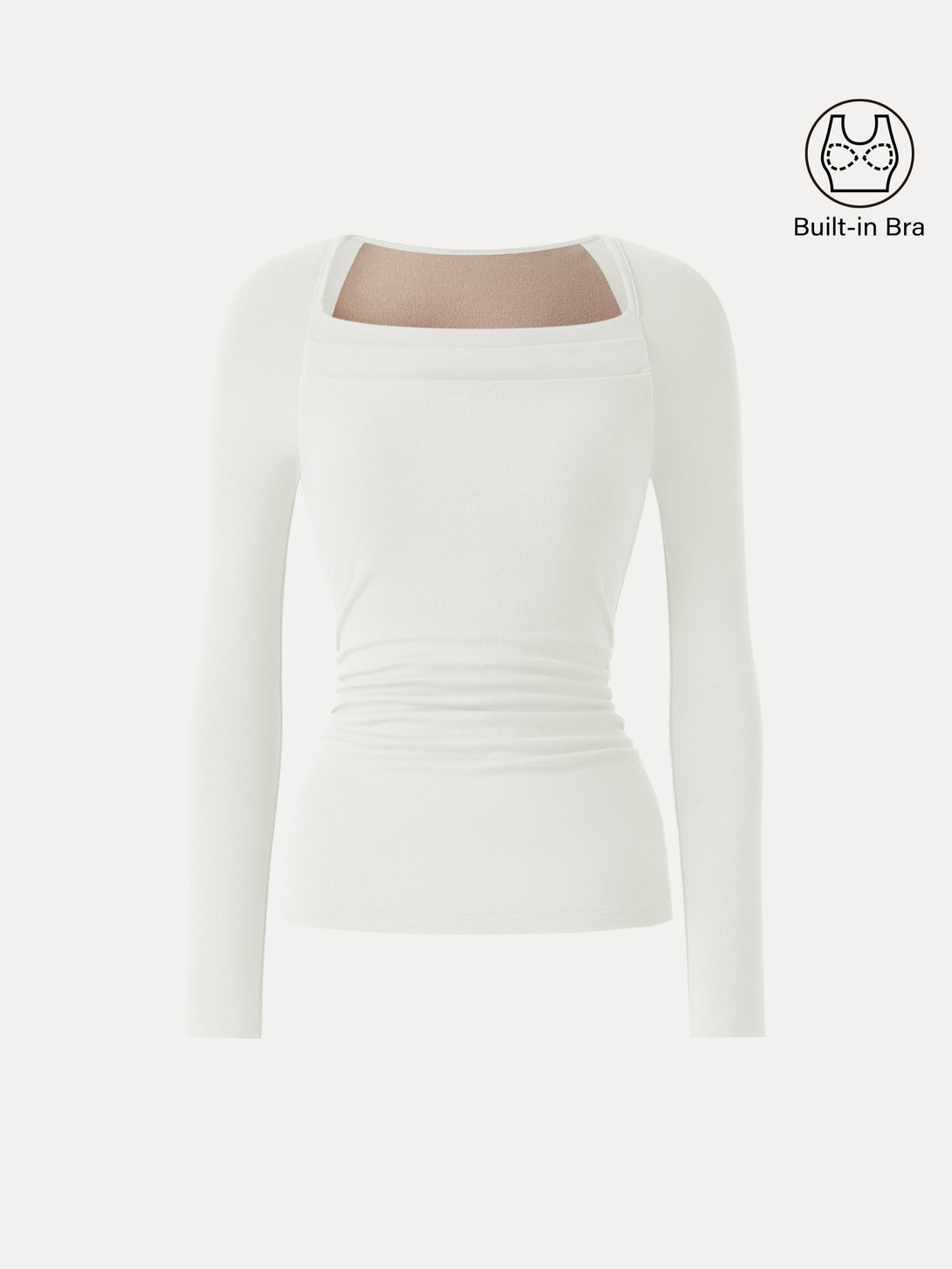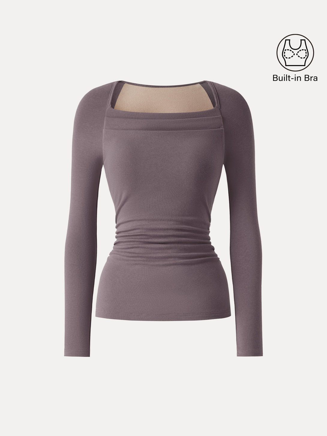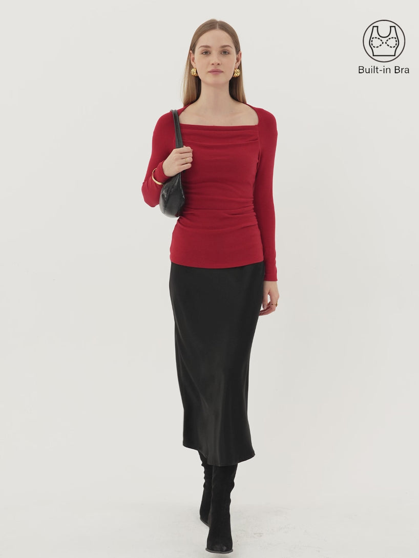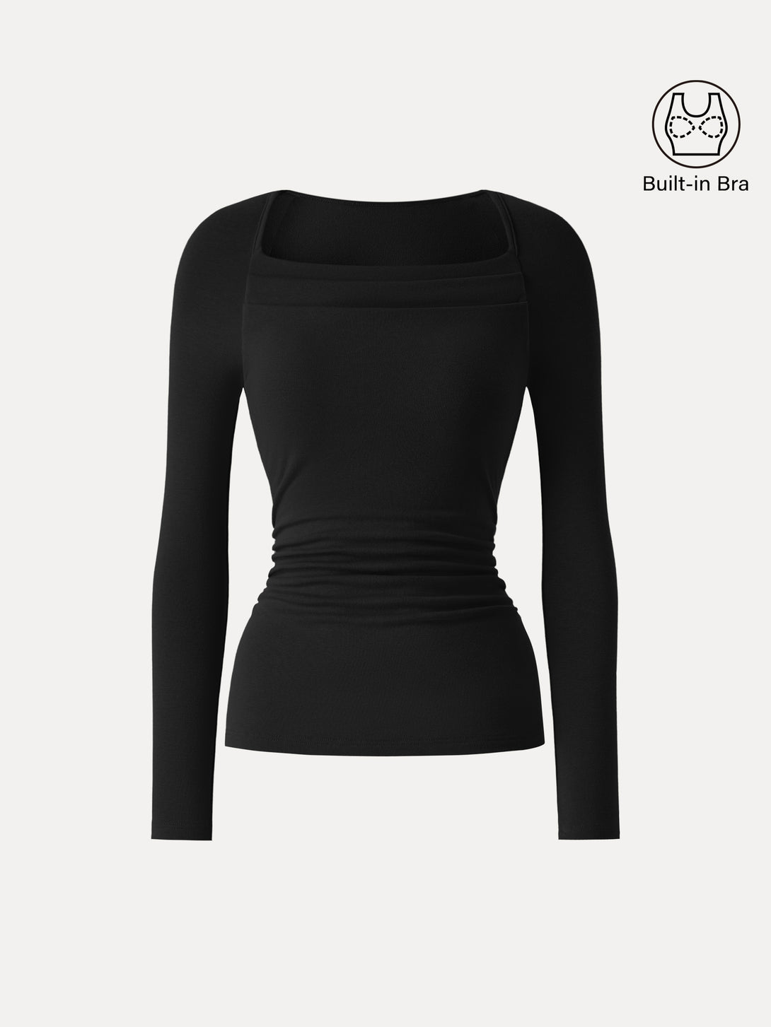 You’ll love this top featuring a straight neckline that beautifully frames your collarbone. Designed with tucked details for flaterring shape, it’s also finished with removable bra pads for comfort and support.
