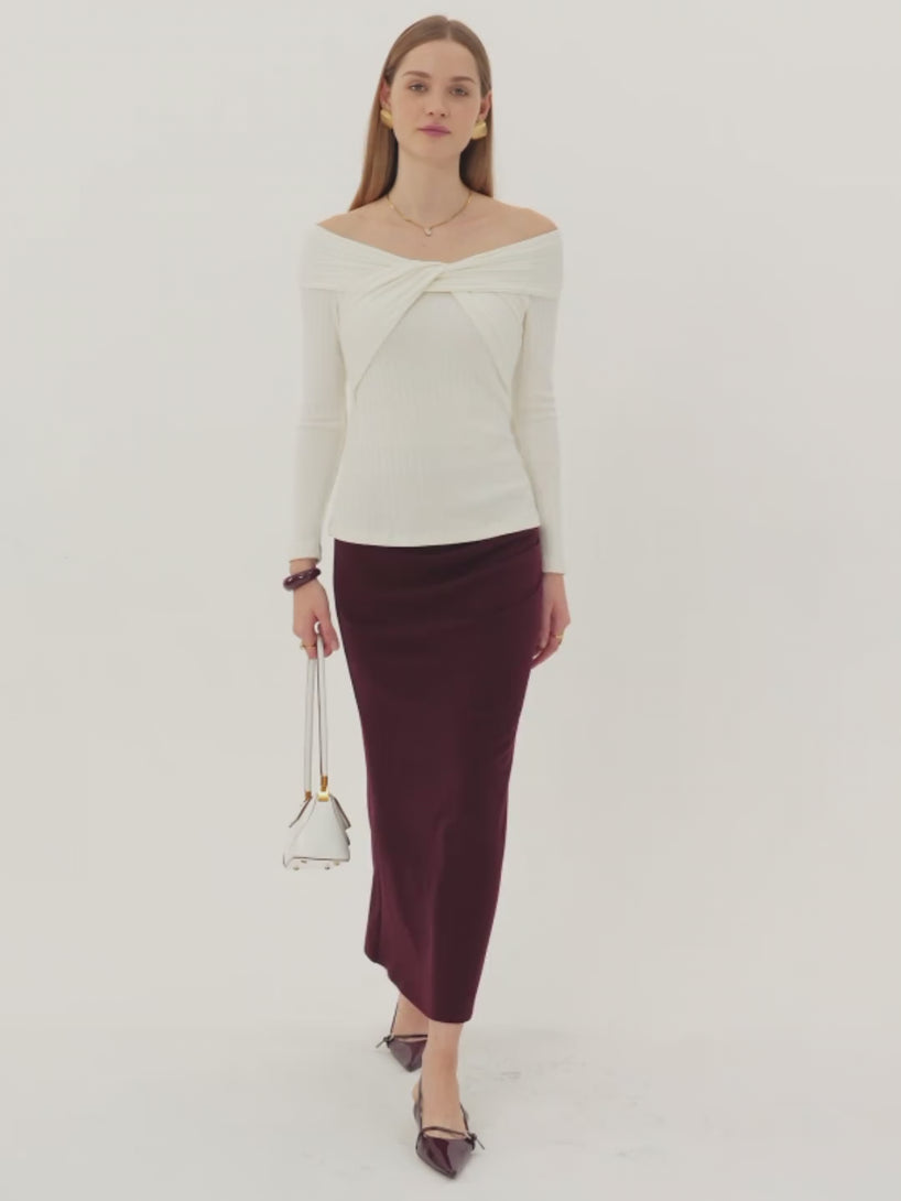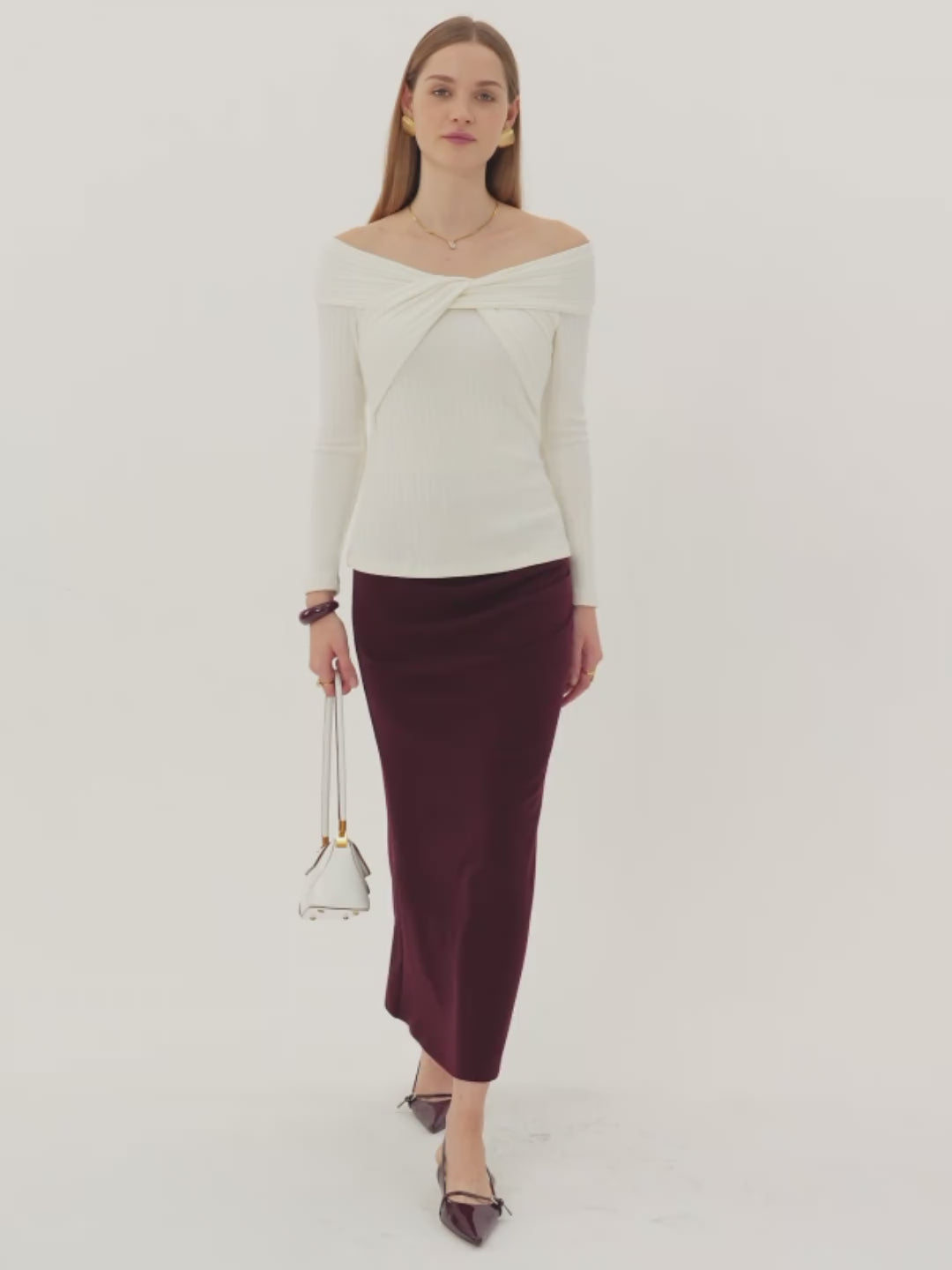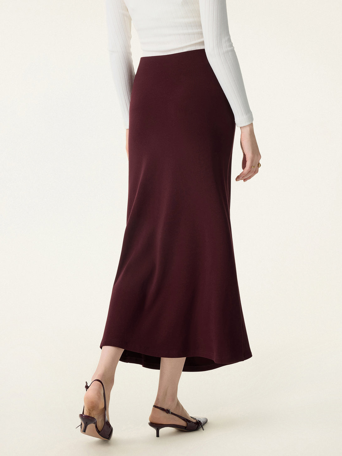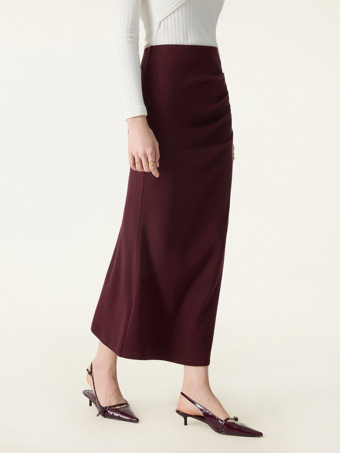 This maxi skirt features tucked details and a flared hem that moves beautifully with every step. Designed with an elastic waistband for a smooth, comfortable fit, it’s a sleek and feminine piece for any occasion.