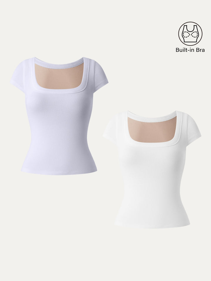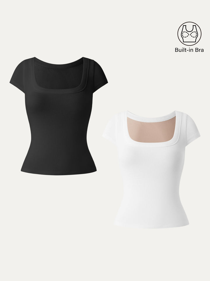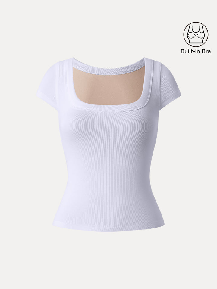 This slim-fit cropped top features a clean square neckline and cute cap sleeves for that everyday-chic vibe. With removable bra pads included, it’s comfy, flattering, and easy to throw on.
