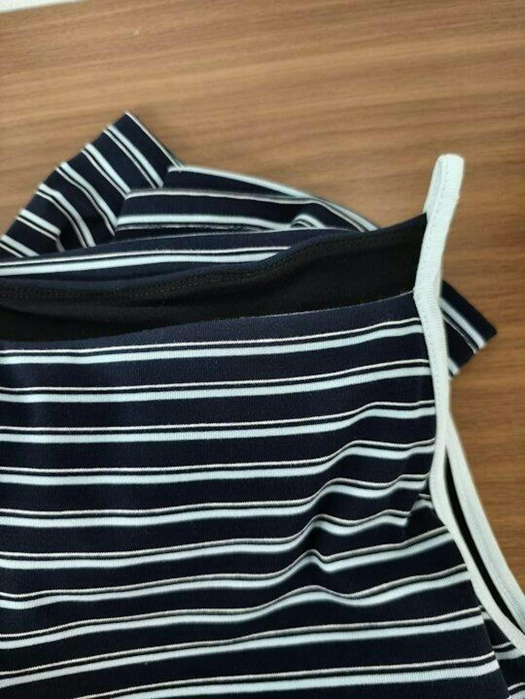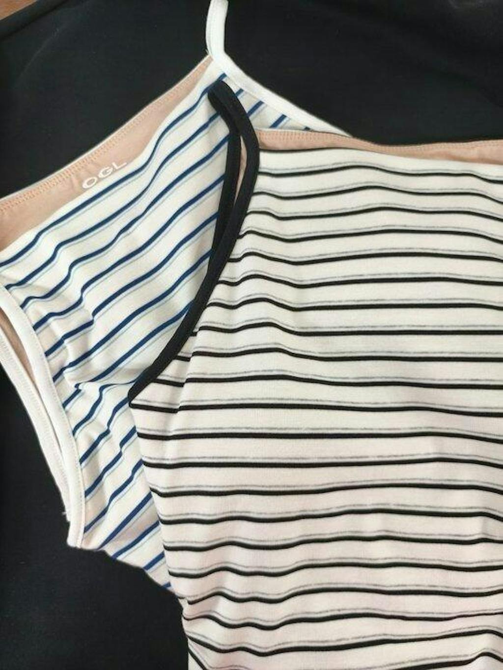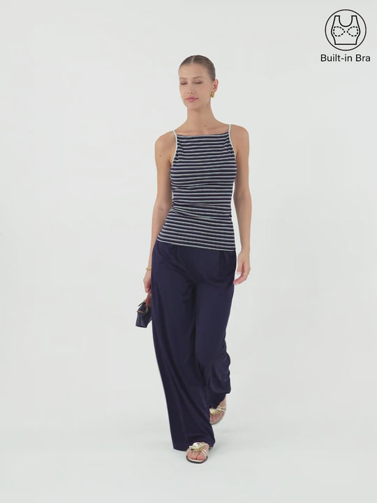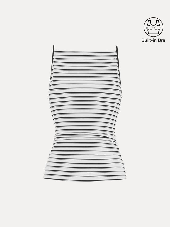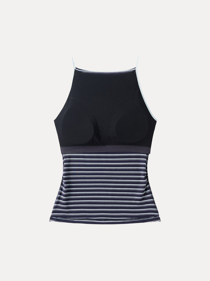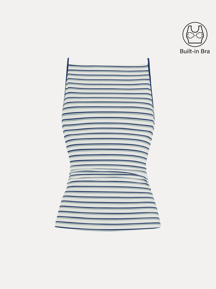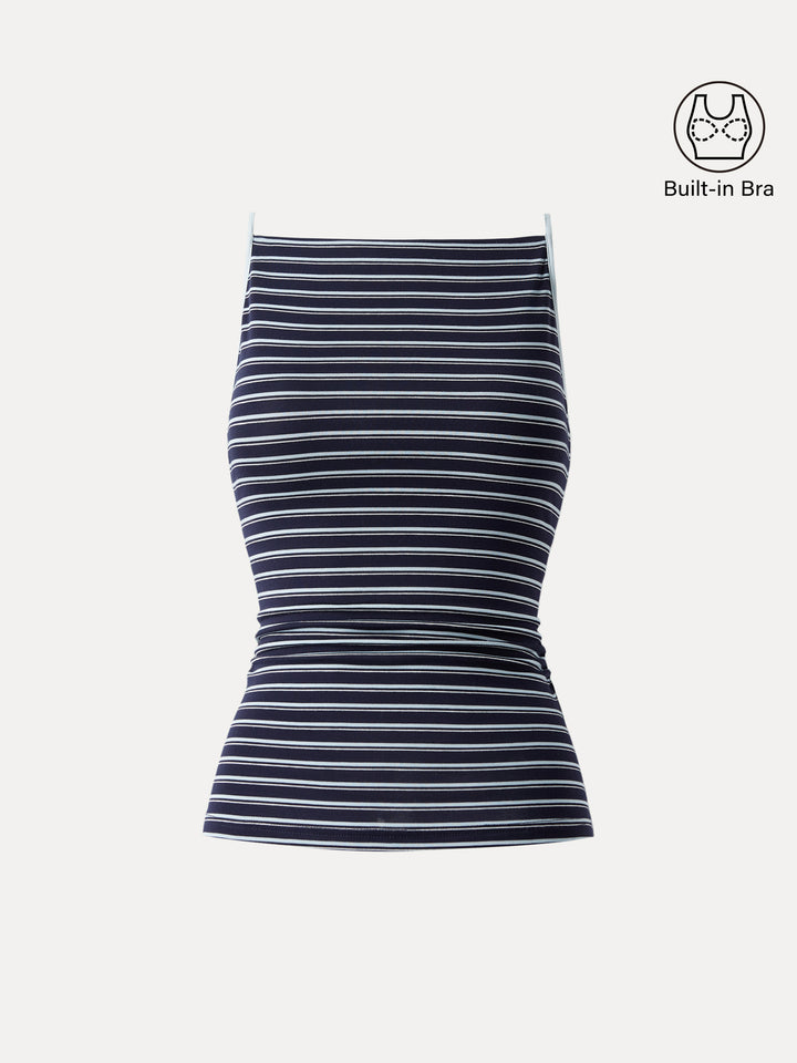 The blue/navy stripes are so versatile. The spaghetti straps don't dig into my shoulders, and the hip length is perfect for layering or wearing alone. Quality is on point—no pilling after multiple washes! 💙