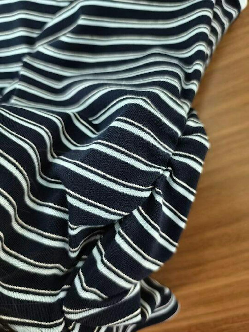 The stripes are so classic, and the ruched sides actually cinch my waist perfectly. Tencel fabric is crazy soft. The stretch is real, so it hugs my body without feeling tight. Wore it to the beach with a flowy skirt, and the fabric stayed cool even in the heat. 10/10 would buy again!